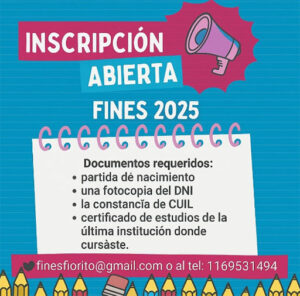El Hospital H.I.G.A. Pedro Fiorito informa que ya está abierta la inscripción al Plan FINES 2025, destinado a personas que deseen finalizar sus estudios primarios o secundarios.