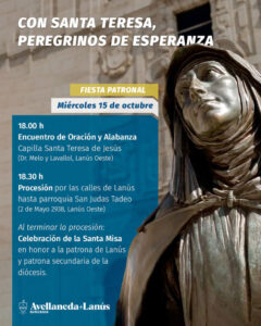 octubre 7, 2025Bajo el lema “Con Santa Teresa, peregrinos de esperanza”, la comunidad católica de Avellaneda-Lanús se reunirá en dos importantes celebraciones convocadas por el Padre Obispo Marcelo (Maxi) Margni, con el objetivo de fortalecer la fe y la comunión eclesial.